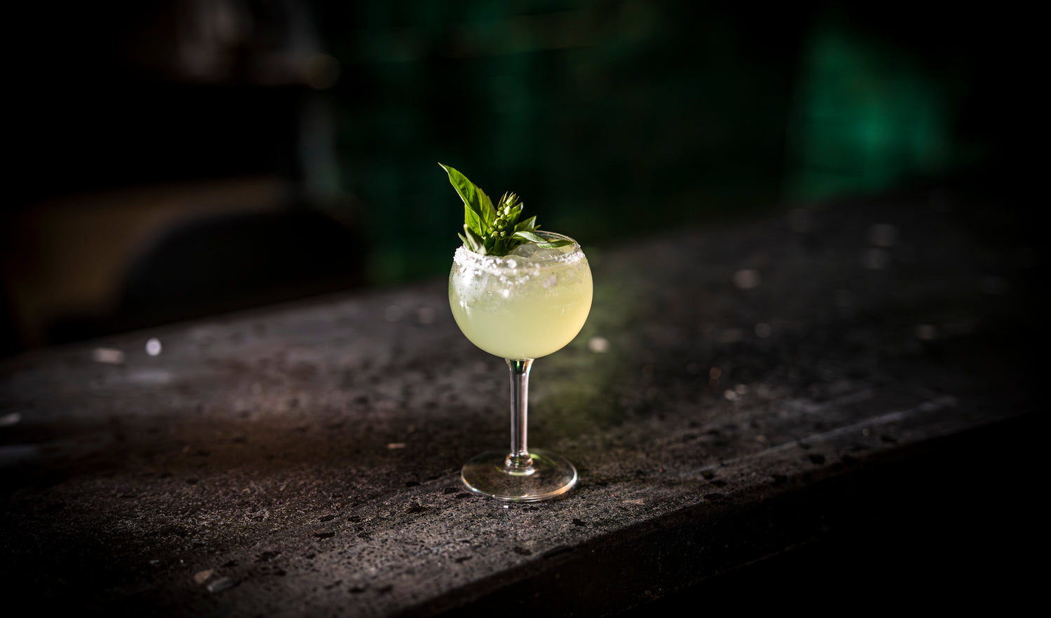 Este cóctel combina la frescura del limón y la albahaca con el toque ahumado del mezcal. Comienza macerando lima y albahaca, luego se añade mezcal, jugo de lima y jarabe de agave. Perfecto para una experiencia gustativa audaz.